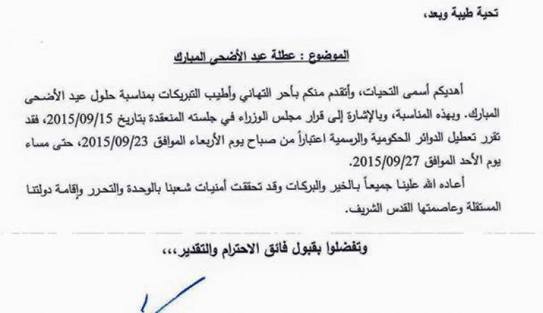 تقديم اجازة عيد الاضحى