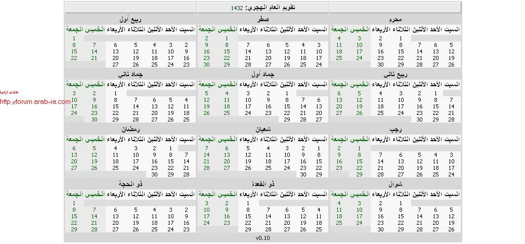 التقويم الهجري كامل لعام 1432 حساب أم القرى منتديات مزامير آل داو د
