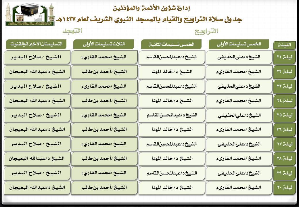 تلاوات المسجد النبوي On Twitter جدول صلاة التراويح بالمسجد النبوي الشريف رمضان 1437