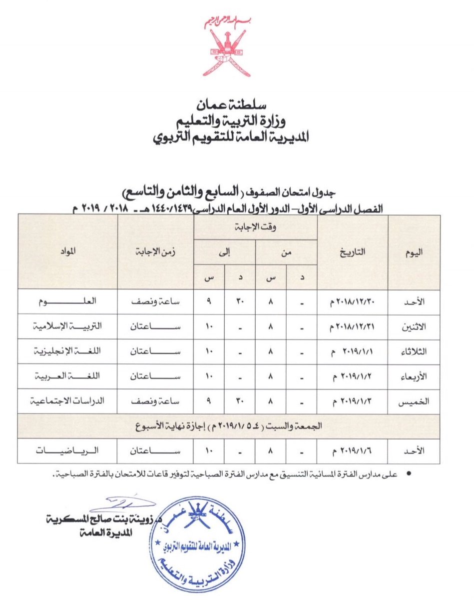 ع مان الحدث On Twitter اطلع على جدول امتحانات صفوف النقل للعام الدراسي 2017 2018م للفصل الدراسي الثاني الدور الأول